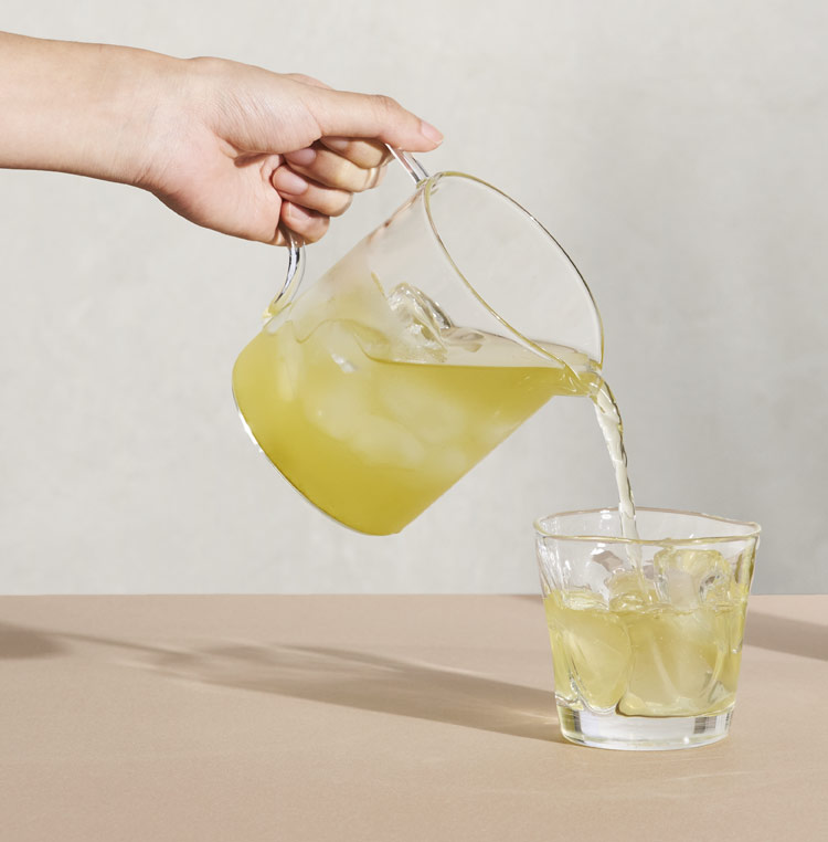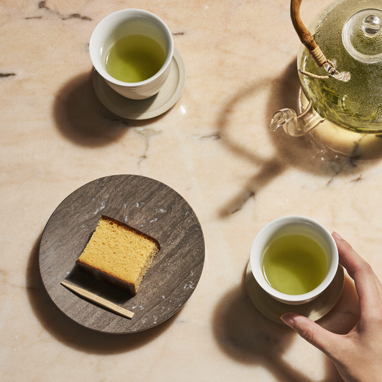 カネ十の柚子煎茶は国産柚子の香りをより引き立てるために、低カフェイン茶葉を使用。茶葉本来の旨味を残しつつ、苦味、渋味を抑えることで、柑橘の爽やかさを感じられる一杯になりました。低カフェインなので就寝前にもおすすめです。