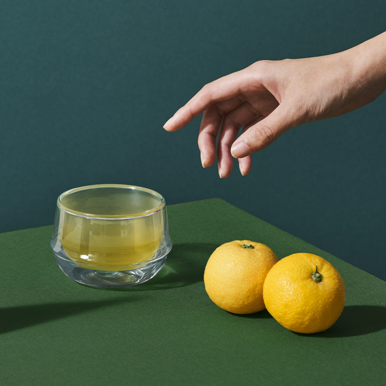 摘みたての新鮮な生茶葉を熱湯で湯がく独自の製法でカフェインを抑えた一番摘みの茶葉にジューシーな甘みを引き出しながら果皮と果肉を丸ごと乾燥した静岡産の柚子と高圧乾燥でフレッシュな香りをしっかり閉じ込めて乾燥したレモングラスをブレンド。
